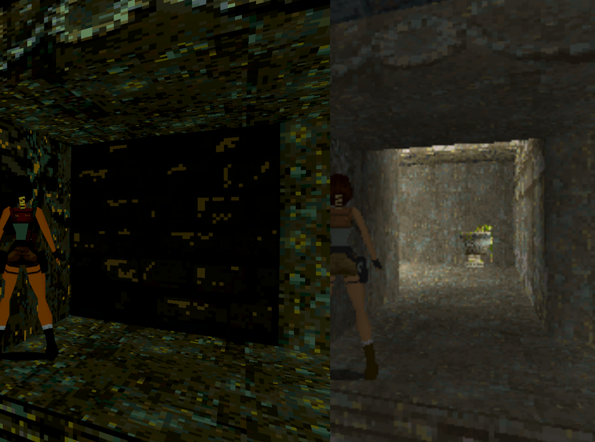 Прежде всего мне пришлось перестроить «сеговское» управление с 6-кнопочным джойстиком и двумя шифтами на мой геймпад от PS4. В самой игре нельзя переназначить все действия, там предлагается только три варианта, поэтому менять контроль мне пришлось непосредственно в эмуляторе. И вынужден признать, непосредственно на «Сатурне» я бы сейчас играть в TR не смог, слишком уж я привык за последние 28 лет к «Соньке», но если бы у меня в 97 появилась не PlayStation, а 32-битная Sega, я бы, конечно, привык к тому управлению. И в целом остался бы от Tomb Raider’а в восторге, благо отличия от PS1 здесь незначительны — они проявляются в основном в более бедной 3D-графике: уровни гораздо темнее, выскакивающих из ниоткуда элементов больше, а пиксели крупнее (в том числе на заставках). Ну и звуки на «Сатурне» более примитивные.